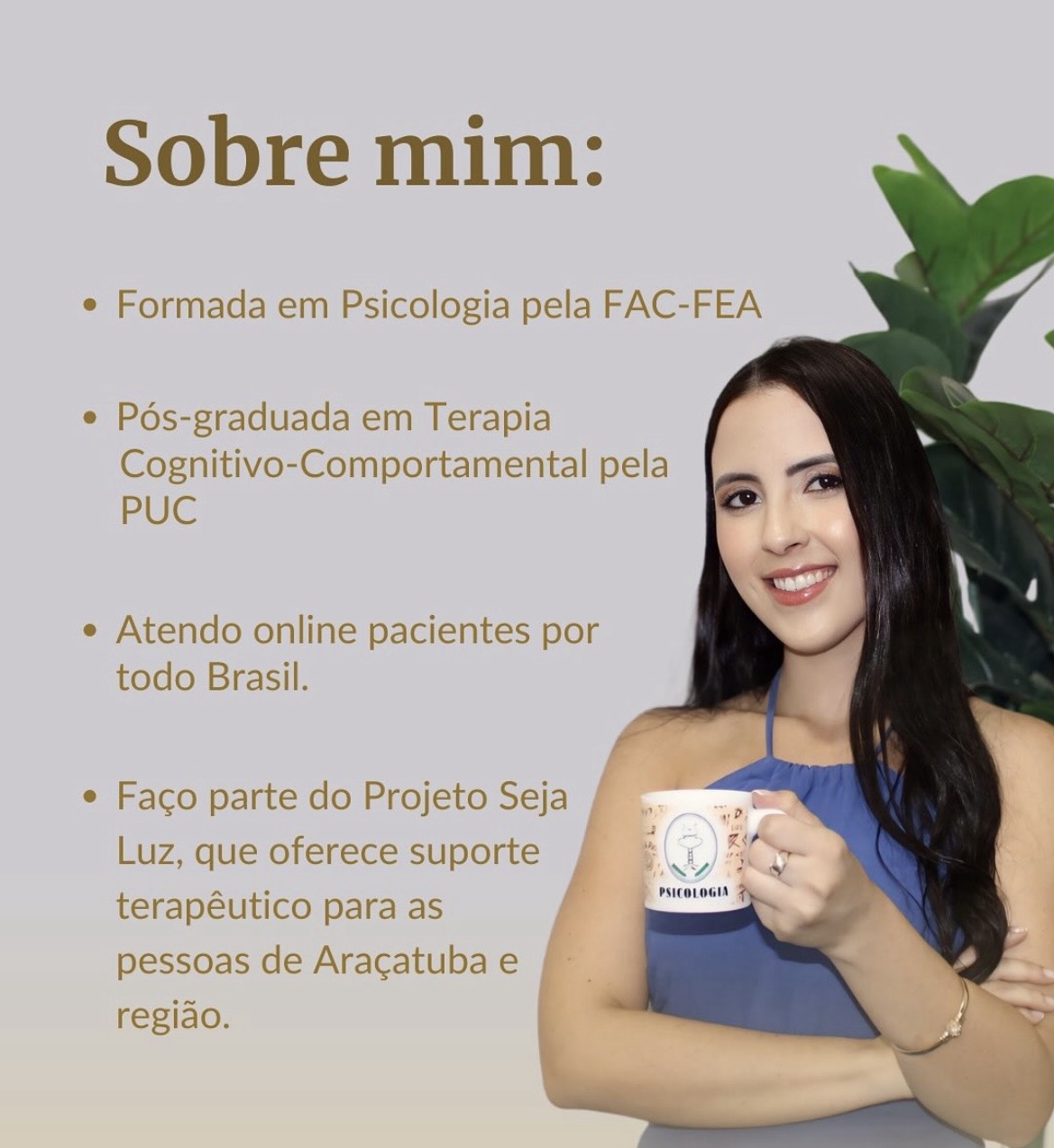 Sou psicóloga e pós-graduada em Terapia Cognitivo-Comportamental pela PUC-RS. Meu objetivo é oferecer um espaço acolhedor, promover o autoconhecimento e fortalecer habilidades que favoreçam mudanças positivas. Acredito que investir no cuidado da saúde mental é um passo essencial para melhorar não apenas o bem-estar emocional, mas também a qualidade de vida como um todo.